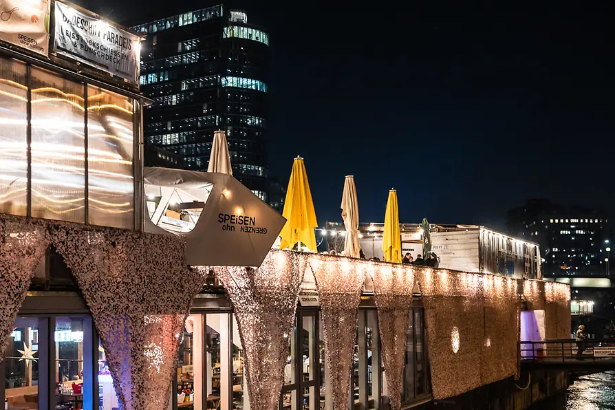 Das Klyo bietet im Winter auf seiner beliebten und bekannten Terrasse direkt am Donaukanal einen entspannten Winter Pop-Up an. Neben Weihnachtsbäumen und Ausblick über den Donaukanal und in den Prater könnt ihr hier in festlicher Atmosphäre Würstl, Kaiserschmarrn und Glühwein genießen.