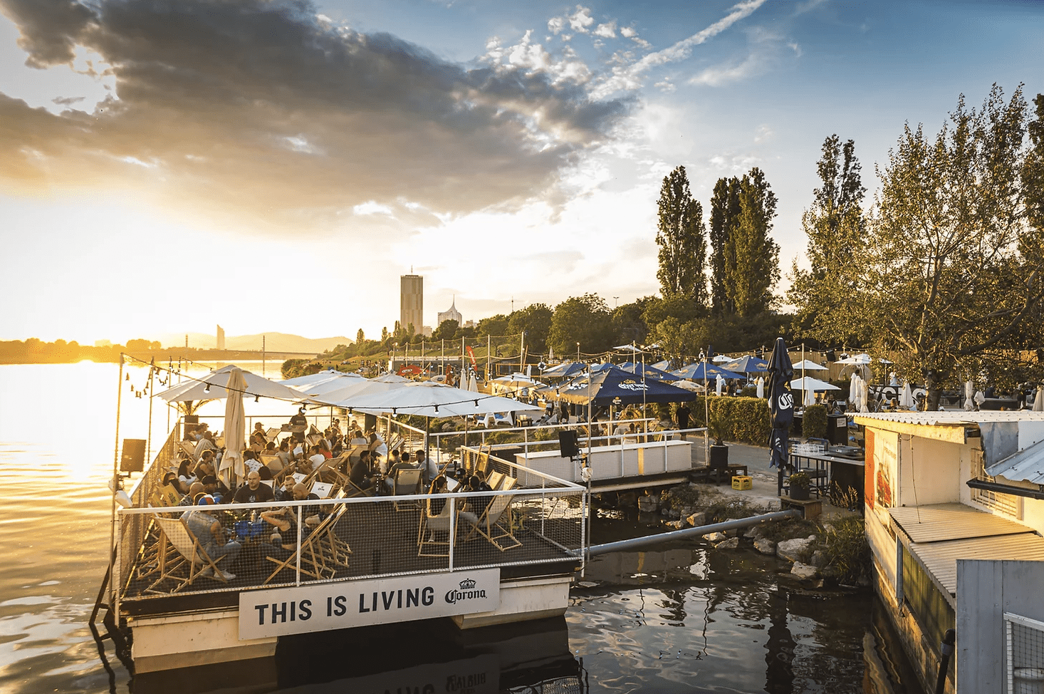 Erlebe Wiens coolste Bars und Restaurants am Wasser und genieße die letzten warmen Sommertage mit leckeren Drinks und toller Aussicht.