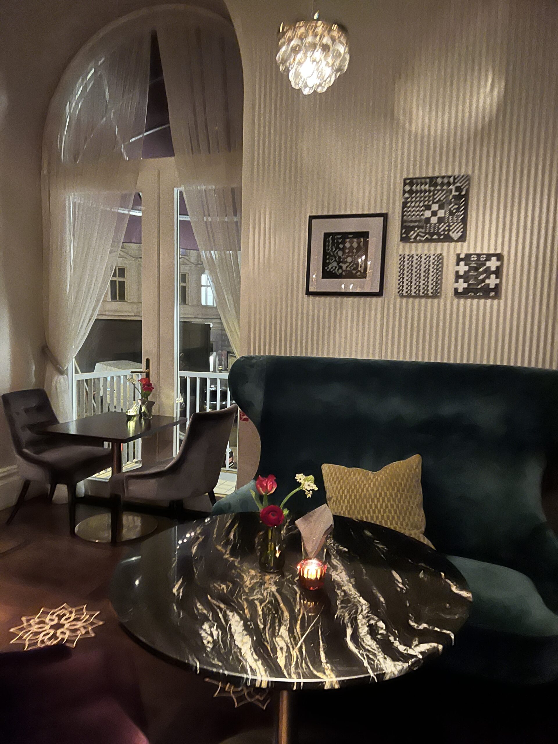 Aber zuerst einmal zurück zum Anfang. Von Außen nicht zu vermuten, verbirgt sich direkt neben dem Volkstheater, hinter dem wunderschönen Eingang des Sans Souci Hotels, die LE BAR. Hat man die wunderschöne Lobby mit dem imposanten Kronleuchter erstmal durchquert, eröffnet sich hinter einer großen Holztüre eine Welt voller Glanz & Gold.