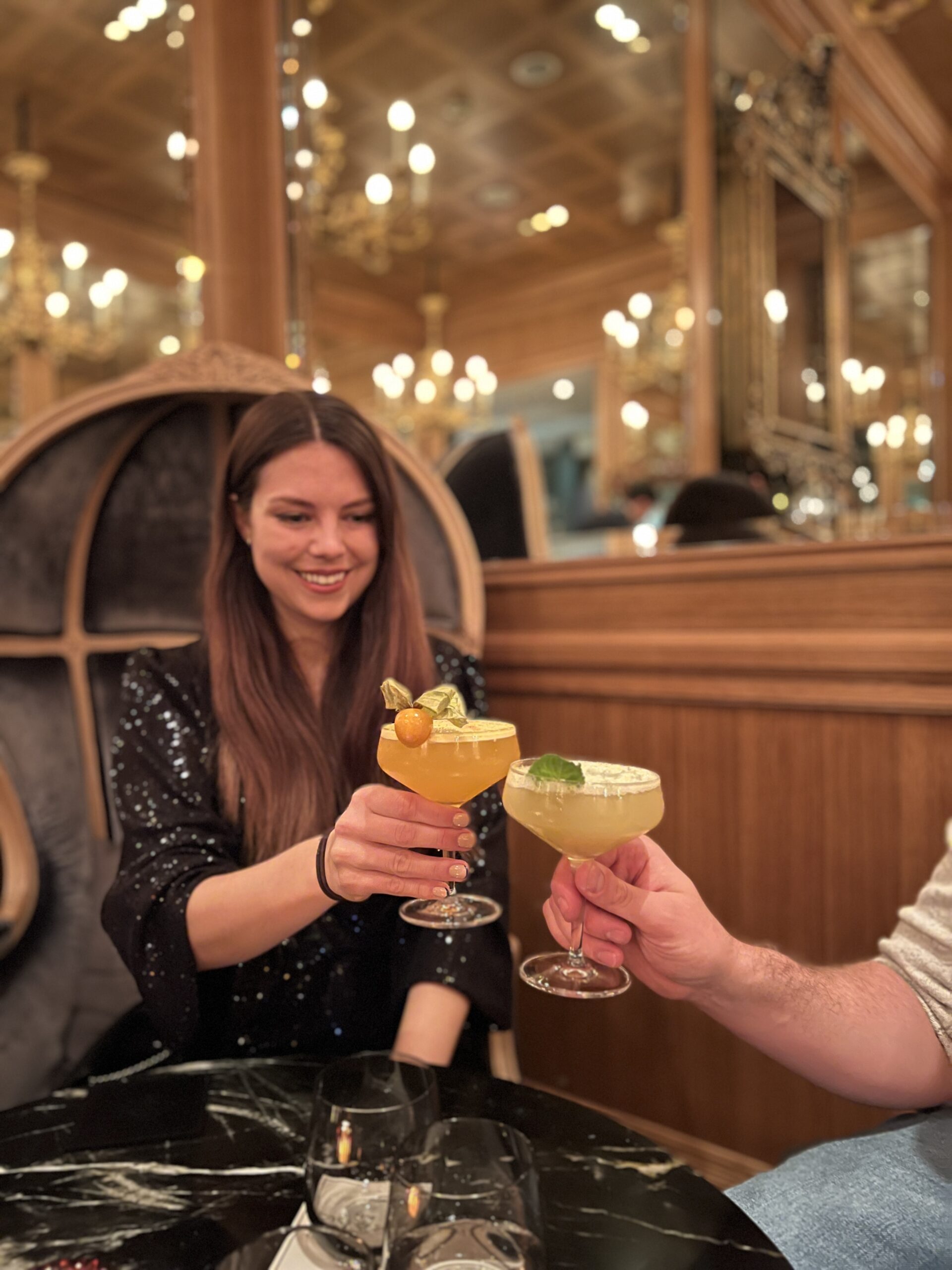 Da wir ebenfalls große Espresso Martini LiebhaberInnen sind, durften wir uns diesen Drink natürlich auch hier nicht entgehen lassen. Gesagt, getan waren wir nach kurzer Zeit nicht nur im Champagner- sondern auch im Espresso Martini Himmel. Gemixt von Barchef Manuel Madaini, mit hausgemachtem Kaffeelikör – einer der besten Espresso Martini, die wir in Wien bis jetzt getrunken haben (und das waren schon so einige ).